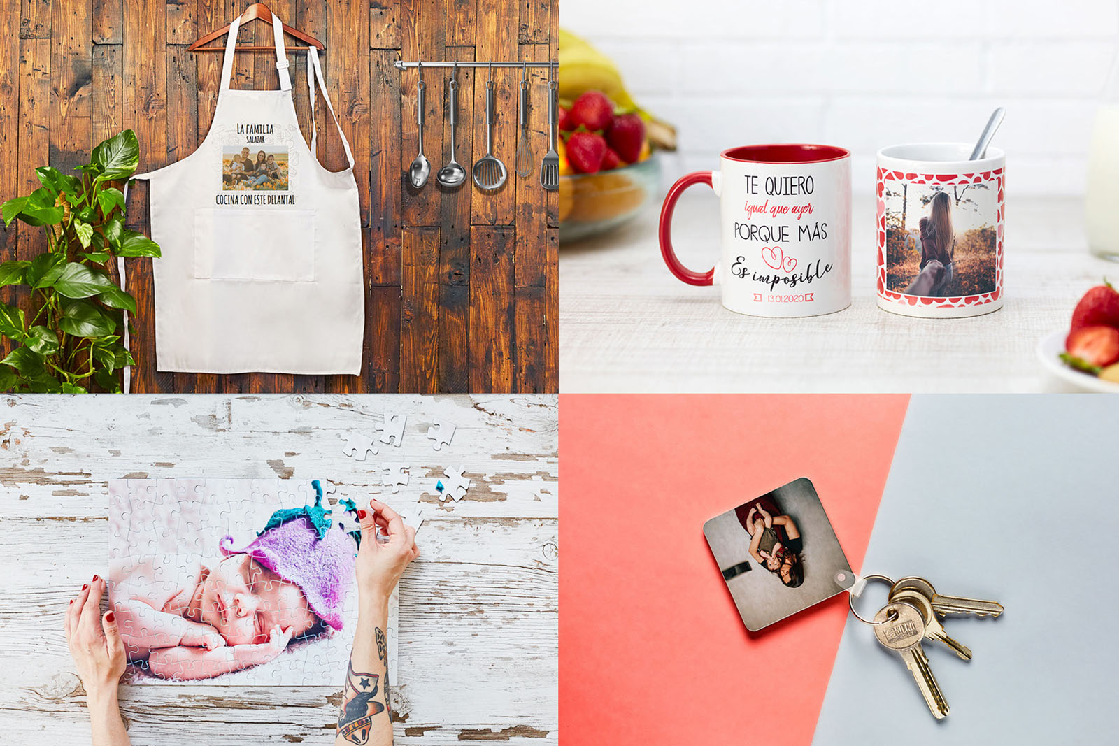 - Foto regalos personalizados, como tazas, llaveros, puzzles, etc.